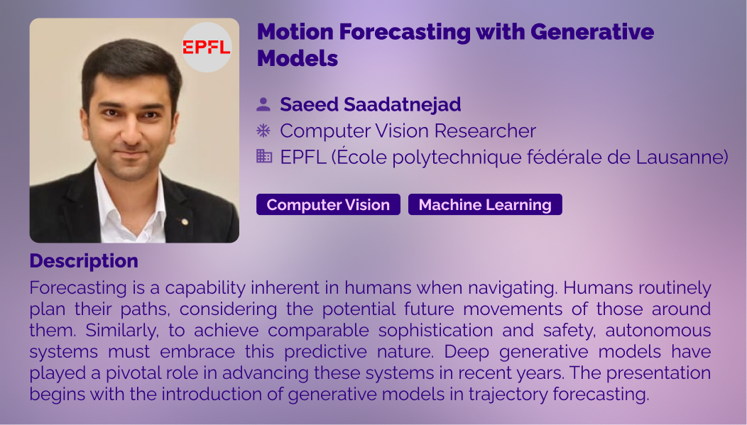 Forecasting is a capability inherent in humans when navigating. Humans routinely plan their paths, considering the potential future movements of those around them. Similarly, to achieve comparable sophistication and safety, autonomous systems must embrace this predictive nature. Deep generative models have played a pivotal role in advancing these systems in recent years. The presentation begins with the introduction of generative models in trajectory forecasting. A novel automated assessment, described as an essential but previously unexplored approach, is presented to objectively evaluate the performance of these models, shedding light on how state-of-the-art models can generate forecasts that violate social norms and scene constraints. To mitigate that, the impact of additional visual cues that humans subconsciously exhibit when navigating space is explored. Moving on to a fine-grained representation, human body pose forecasting is discussed. A generic model is introduced to deal with not only clean environments but also real-world noisy observations. Employing a diffusion-based approach for pose forecasting, the task is framed as a denoising problem. The presentation closes by briefly exploring future directions in this field.