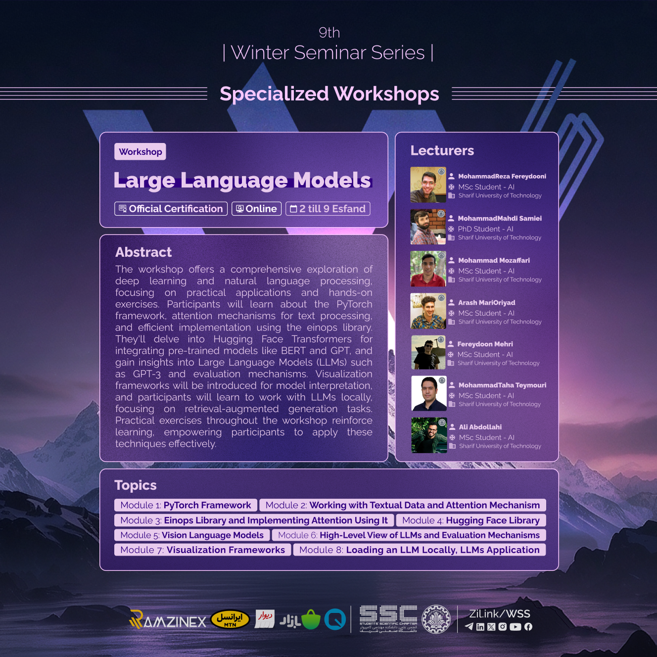 The workshop offers a comprehensive exploration of deep learning and natural language processing, focusing on practical applications and hands-on exercises. Participants will learn about the PyTorch framework, attention mechanisms for text processing, and efficient implementation using the einops library. They'll delve into Hugging Face Transformers for integrating pre-trained models like BERT and GPT, and gain insights into Large Language Models (LLMs) such as GPT-3 and evaluation mechanisms. Visualization frameworks will be introduced for model interpretation, and participants will learn to work with LLMs locally, focusing on retrieval-augmented generation tasks. Practical exercises throughout the workshop reinforce learning, empowering participants to apply these techniques effectively.